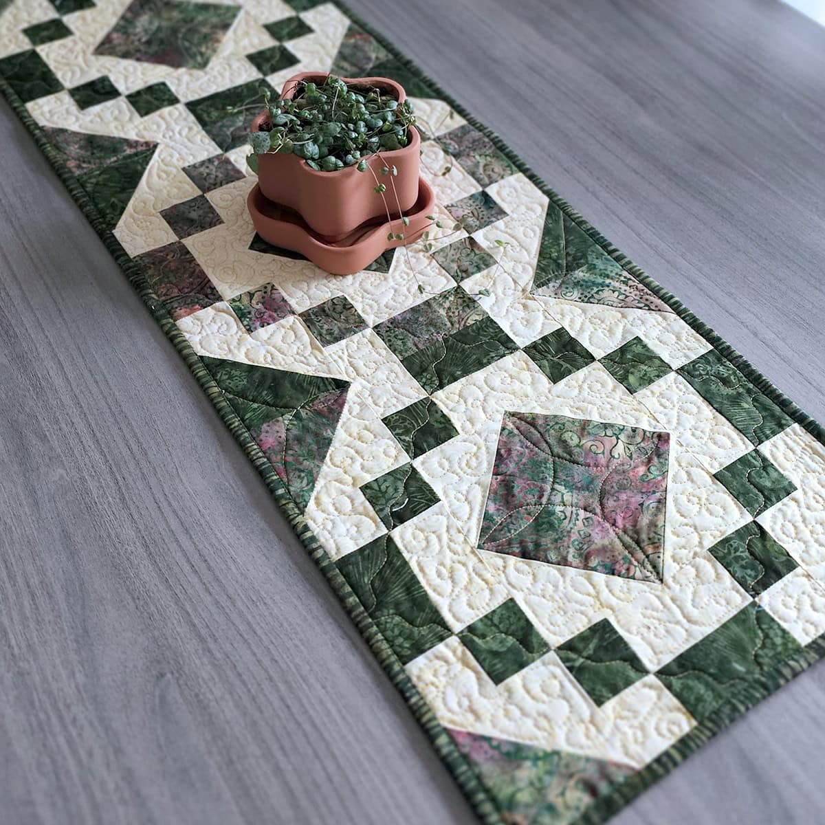 I made the Wintergreen table runner back in 2018 as an Island Batik quilt project. There is a free tutorial for this also.