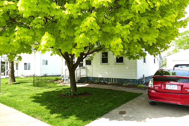 It has been so neat to see the trees in our front yard leaf out! Look at the brilliant colors in this Maple. You can barely see where I removed the red bricks and flower garden that was between the two trees.