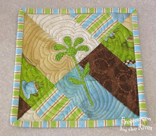 I love you little mug rugs. I love just playing with fabric and seeing what happens.