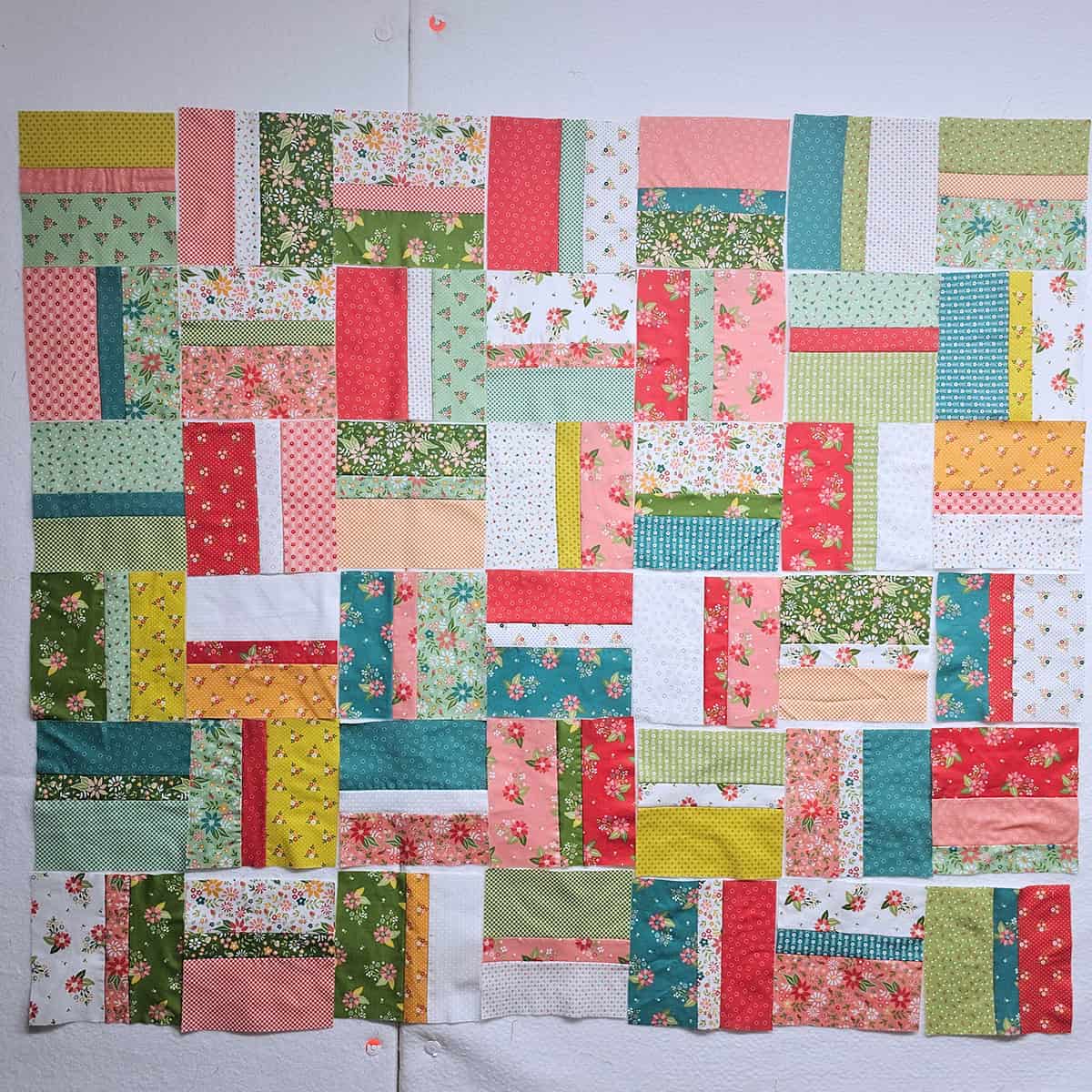With 42 quilt blocks, you can lay out 6 rows of 7 quilt blocks. I like to lay all of the blocks out and then move them around if I have the same fabric touching. Look at the photo to see how I rotated the blocks.
