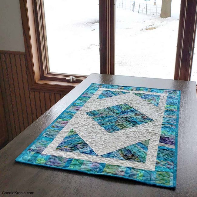 I also made a Batik String Angles table runner using teals (no surprise) and several other colors that you might enjoy. I used a 10-inch layer cake to make the blocks and there is also a tutorial with it.