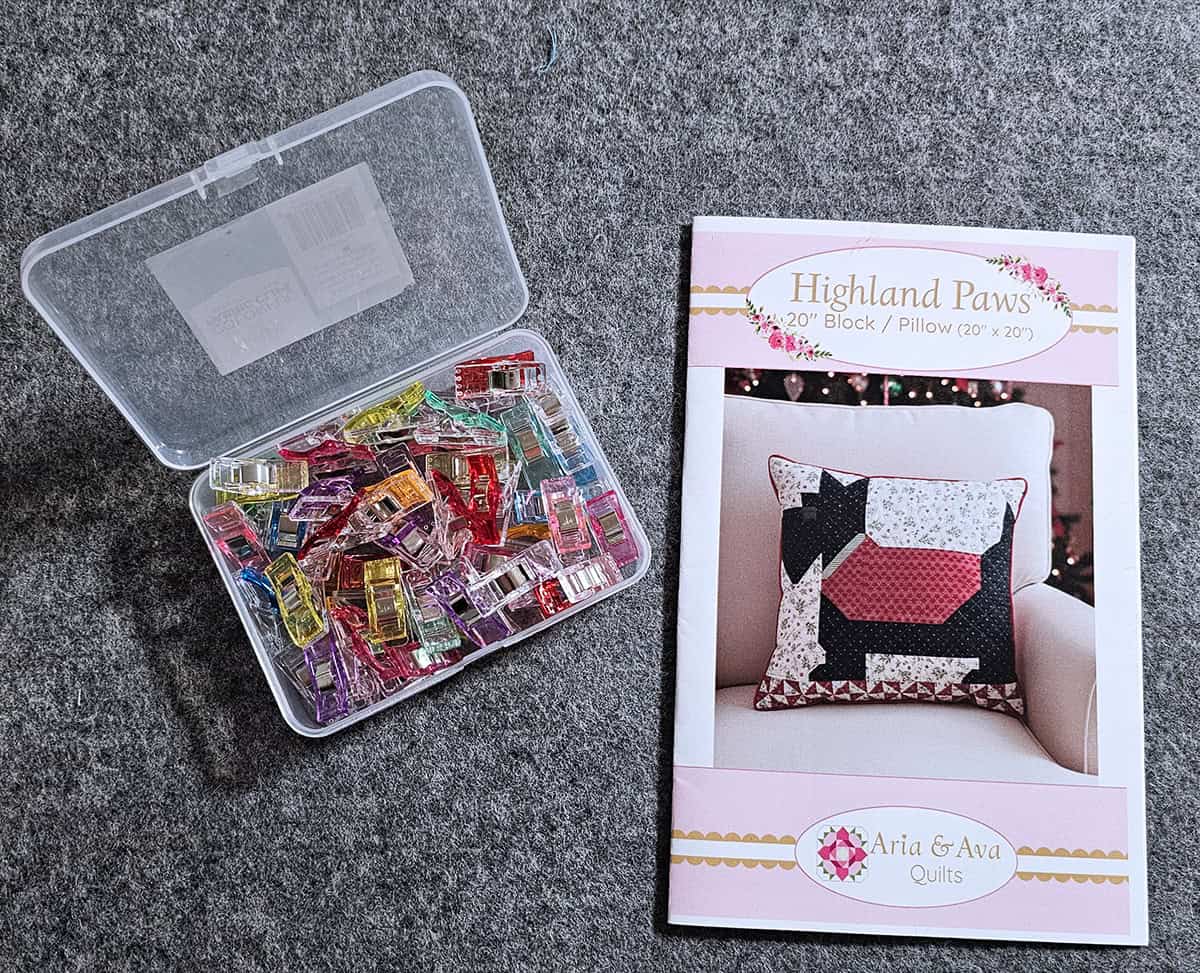 Be sure to enter the Linky Party this month for a chance to win this the box of quilting clips and this cute dog pattern. I use clips like this all the time when I am adding my binding. MSQ has a pack of 12 quilting clips on sale right now also.