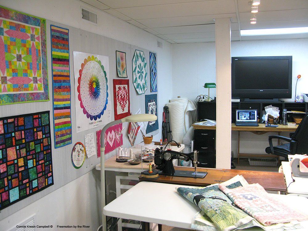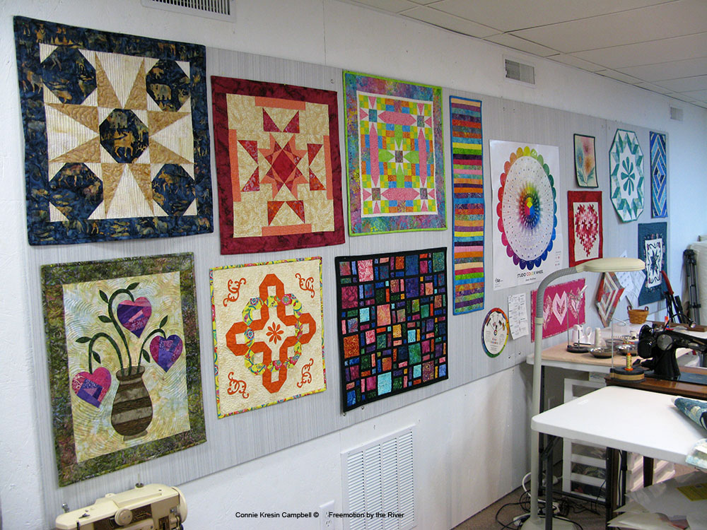 I've been following along as you move into your fabulous new Space! This is every quilter's dream. I love seeing some of your minis on the wall – perfect!
