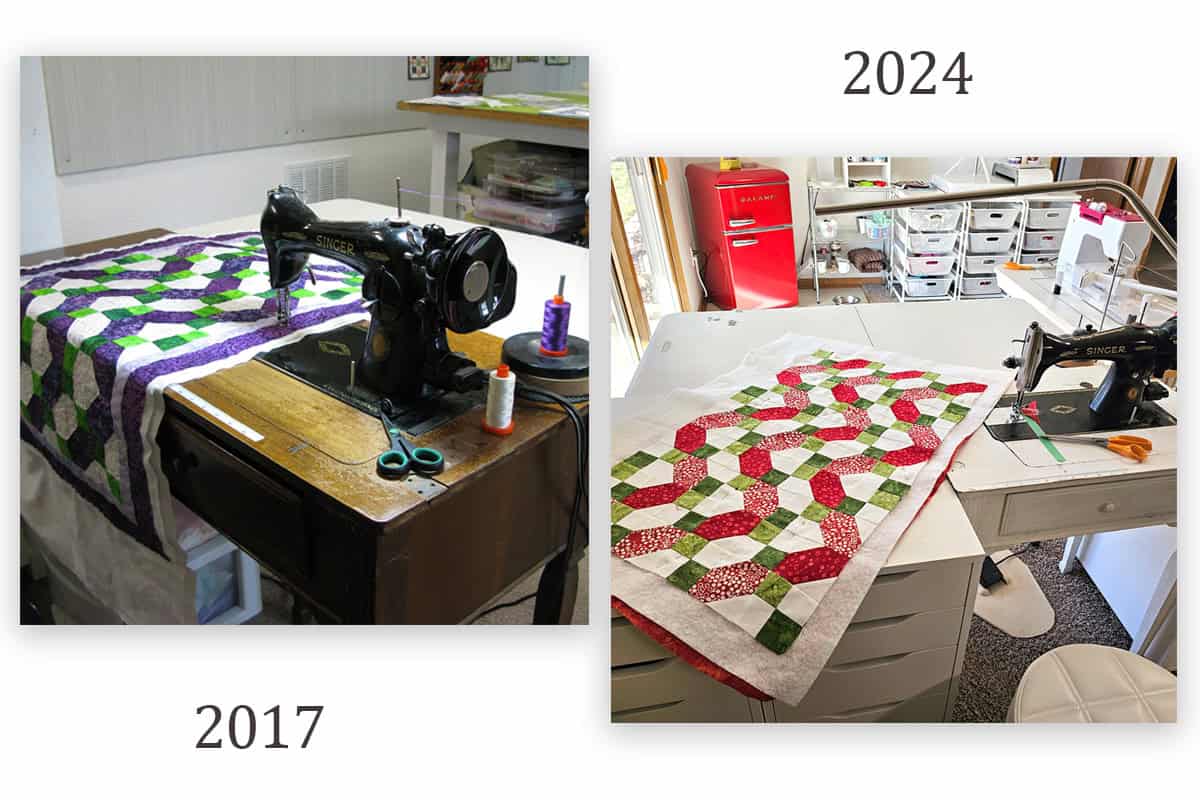 Would you believe I first made this table runner in 2017! Same sewing machine but I finally painted it white.